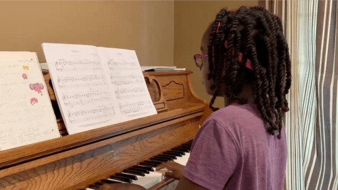 “Sarah is patient, kind, and so encouraging; and SO great at getting them to move to the next level on any song they are learning. She makes lessons fun (even when learning technical skills), and challenges them to perform in front of an audience, which I never thought they would do! Now at age 9 and 7, I cannot believe how much they have learned and how confident they are in their piano skills. They can read music, they love music and want to continue. Totally recommend Sarah!!” – Janet, parent